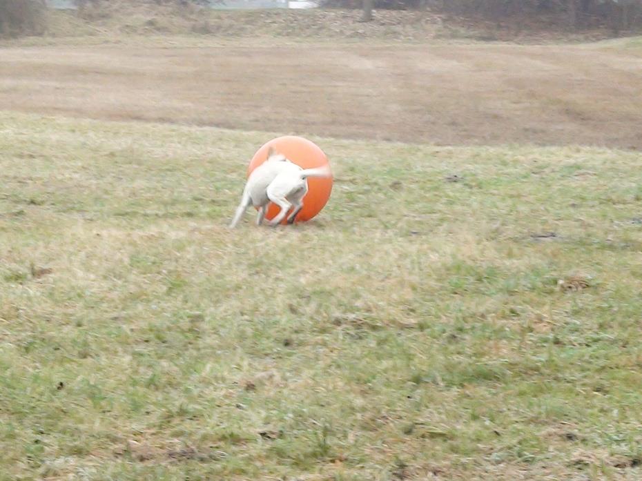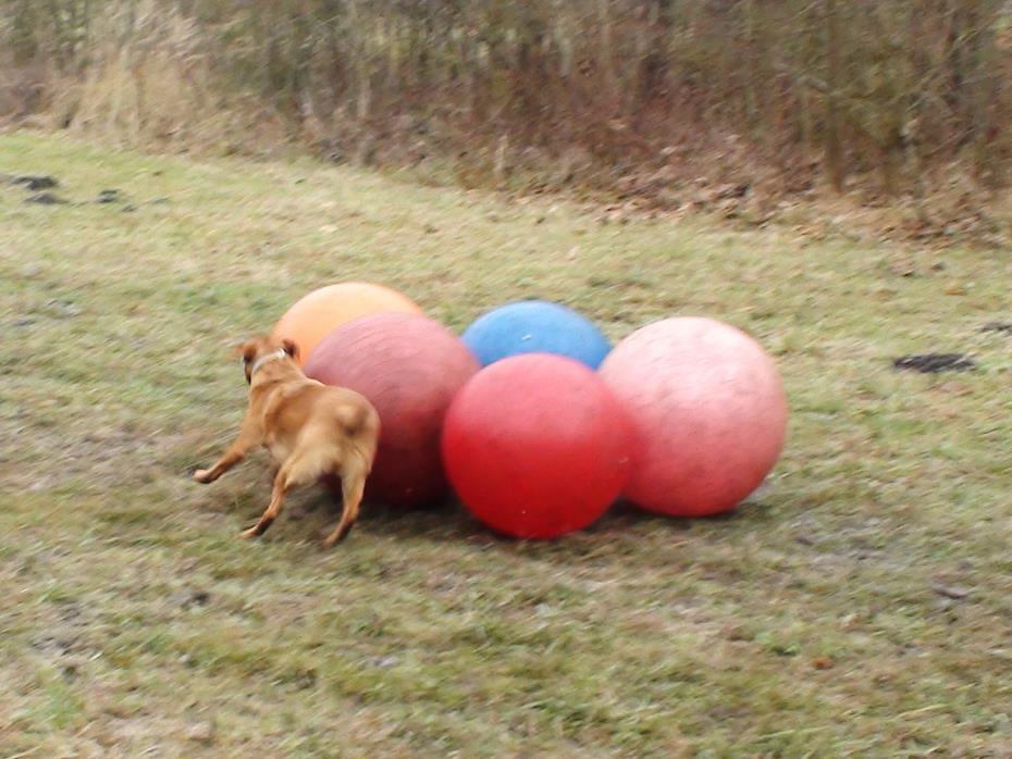 Treibball ist eine relativ neue Hundesportart, die insbesondere am Anfang für Hüte- und Treibhunde gedacht war, um sie 'artgerecht' auszulasten. Da aber nicht jedem Hundebesitzer dieser Rassen eine Schafherde zur Vergügung steht, bieten die Bälle eine sehr gute Alternative um den Hunden wieder einen 'Job' zu geben. Aber natürlich bringt diese Beschäftigung auch für jede andere Rasse sehr viel Spaß und vor allen ist ein sehr guter Gehorsam mit Distanzkontrolle erforderlich!